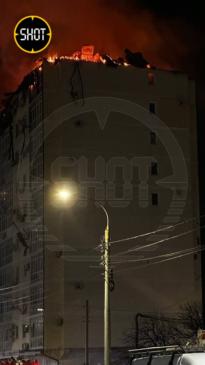 Серьёзный пожар в анапской многоэтажке на Объездной улице не утихает. Полыхающая крыша частично обрушилась, огонь перекинулся на квартиры, сообщили SHOT очевидцы. Возбуждено уголовное дело по статье "Оказание услуг, не отвечающих требованиям безопасности".
