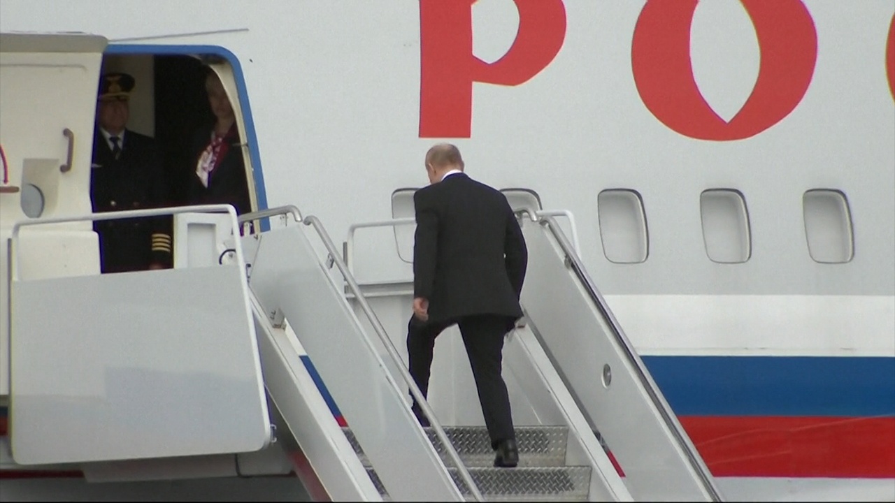Президент России Владимир Путин улетает из Аляски после переговоров с главой Белого дома Дональдом Трампом. Глава государства поднялся на борт самолета.