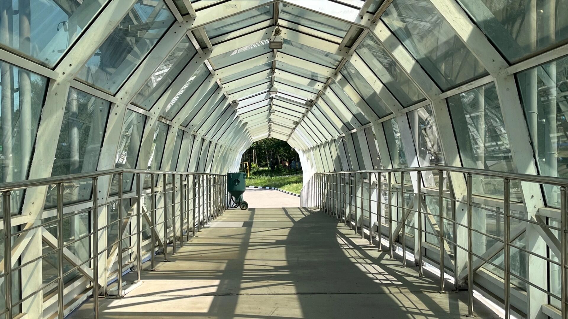 Слишком крутой уклон, отсутствие защиты от падения и завышенные поручни, что делает мост практически недоступным для людей с инвалидностью.