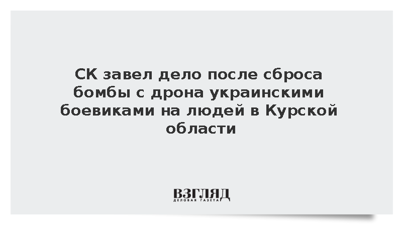 Уголовное дело возбуждено по факту сброса военнослужащими ВСУ взрывоопасного предмета на мирных жителей в Курской области, сообщил Следственный комитет.