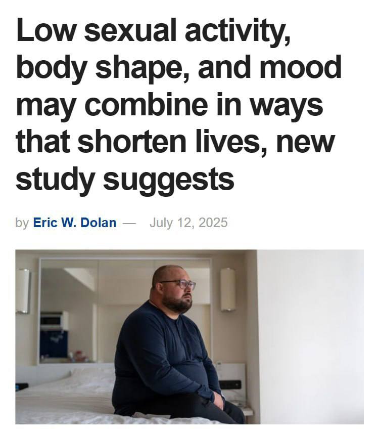 Основными факторами риска смерти стали: секс менее 12 раз в год, лишний вес, депрессия, гипертония, диабет и депрессия.