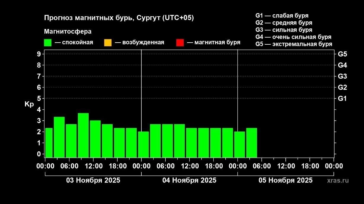 Прогноз магнитных бурь в ХМАО на 3 ноября