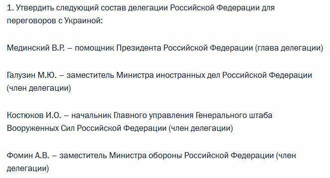 Владимир Путин утвердил состав делегации России для переговоров в Стамбуле по Украине. Возглавит российскую делегацию помощник Президента России Владимир Мединский. Кроме того в состав делегации войдут заместитель Министра иностранных дел Михаил Галузин, начальник Главного управления Генштаба ВС РФ Игорь Костюков и заместитель Министра обороны РФ Александр Фомин. ❗ Подписывайтесь, это Baza
