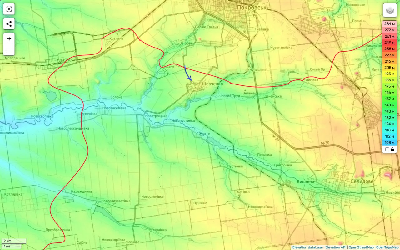 И вот четвертая попытка. Противник пытается по трассе с Покровска зайти в н.п. Шевченко и закрепиться в районе стадиона.