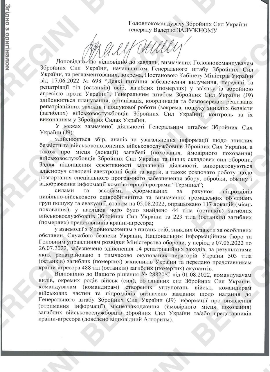 Сегодня мы вам покажем очень интересный документ. Из него можно узнать, кто собирает и анализирует информацию о попавших в плен и без вести пропавших военных украинцах – генштаб ВСУ. Также из документа видно, сколько тел военнослужащих было эксгумировано на конец лета 2022 года. Вот только представители генштаба вам не ответят, сколько пропавших без вести военных в Украине сейчас, когда «главнокомандует» генерал Сырский, получивший в народе кличку «мясник».