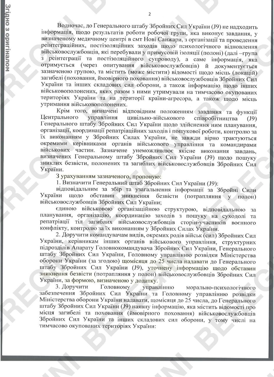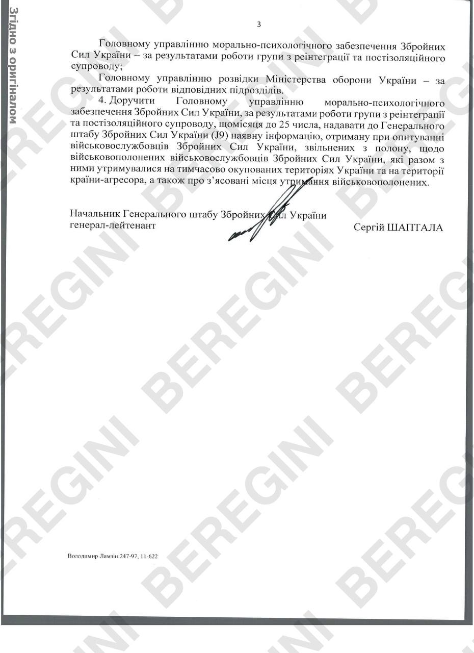 Но самая интересная ситуация с обменом военнопленных. Как видите из документа, существует рабочая группа в медицинском центре, расположенном в Новых Санжарах. Это группа «по организации и проведению реинтеграционных, постизоляционных мероприятий по психологическому восстановлению военнослужащих, которые находились в плену. Там бывших пленных опрашивают, как к ним относились в плену. А так как фактов нарушением международных конвенций по отношению к военнопленным так и не выявили, пришлось СтратКому подключать к съемкам 95 квартал и ципочек из ЦИПсО.