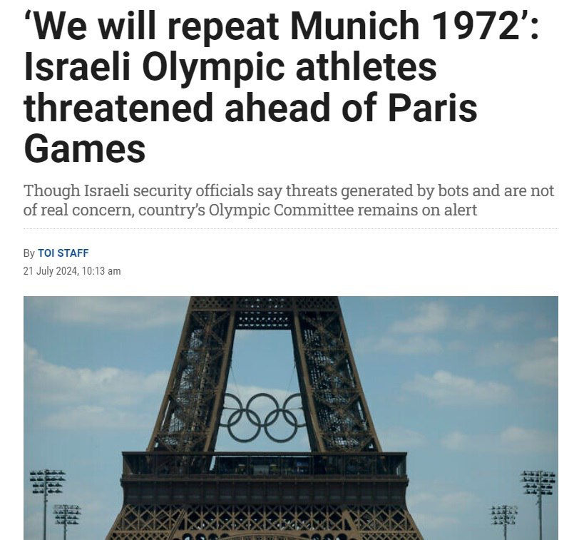 Спортсменам угрожают в том числе «повторить Мюнхен 1972 года». Тогда в результате теракта убили 11 членов израильской сборной.
