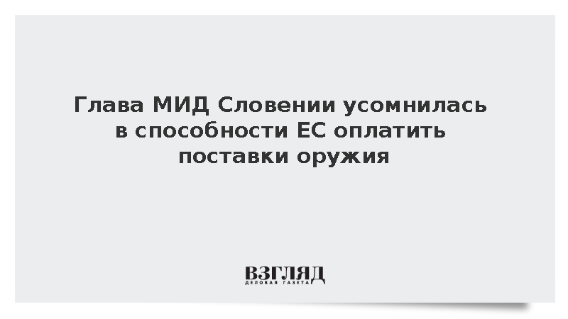 Глава МИД Словении Таня Файон выразила сомнения в способности Евросоюза найти необходимые средства для оплаты поставок американского оружия Киеву,