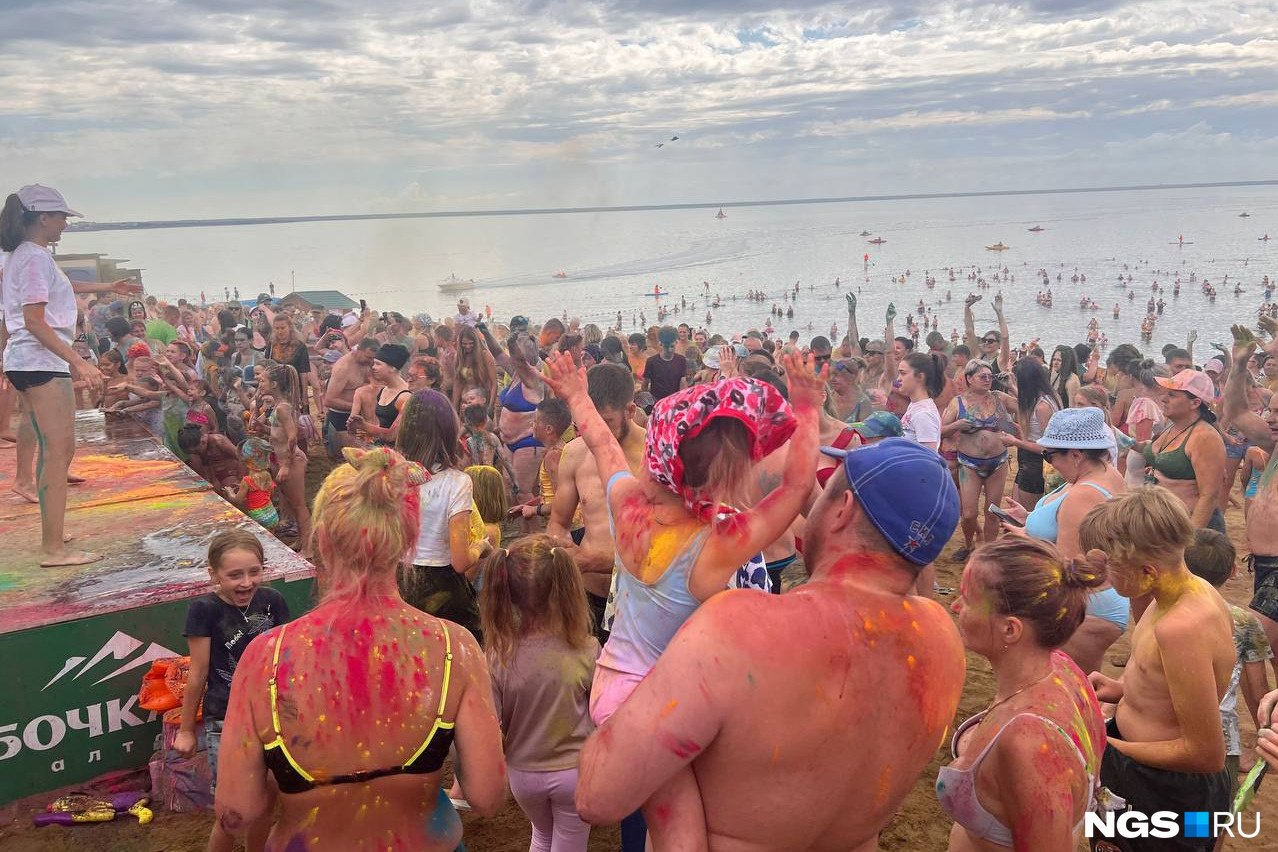 На курорте Яровое в Алтайском крае 7 июля отметили праздник Ивана Купала фестивалем красок. На нем оказалась и журналистка НГС Настасья Медведева — она сняла фото и видео.