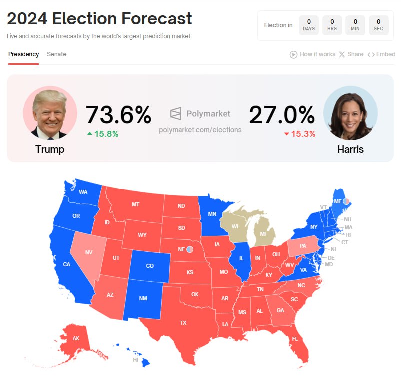 Согласно расчётам аналитиков, шансы на избрание кандидата от республиканцев превысили 73%.