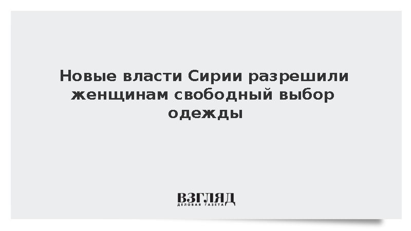 Новые власти Сирии, пришедшие к власти в Дамаске, не планируют вводить запреты на ношение определенной одежды для женщин, стремясь уважать личные права каждого гражданина, сообщает Al Watan.