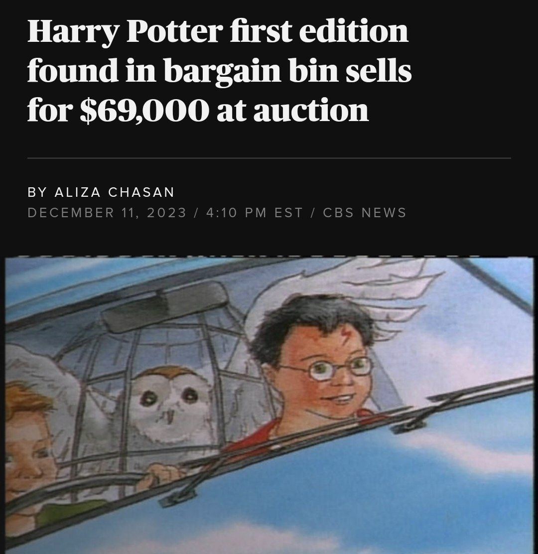 Книгу Гарри Поттер и Философский камень продали на аукционе за 69 тыс. баксов. Это был экземпляр из первого тиража ещё в 1997 году, продавец купил его 26 лет назад всего за 12 долларов.