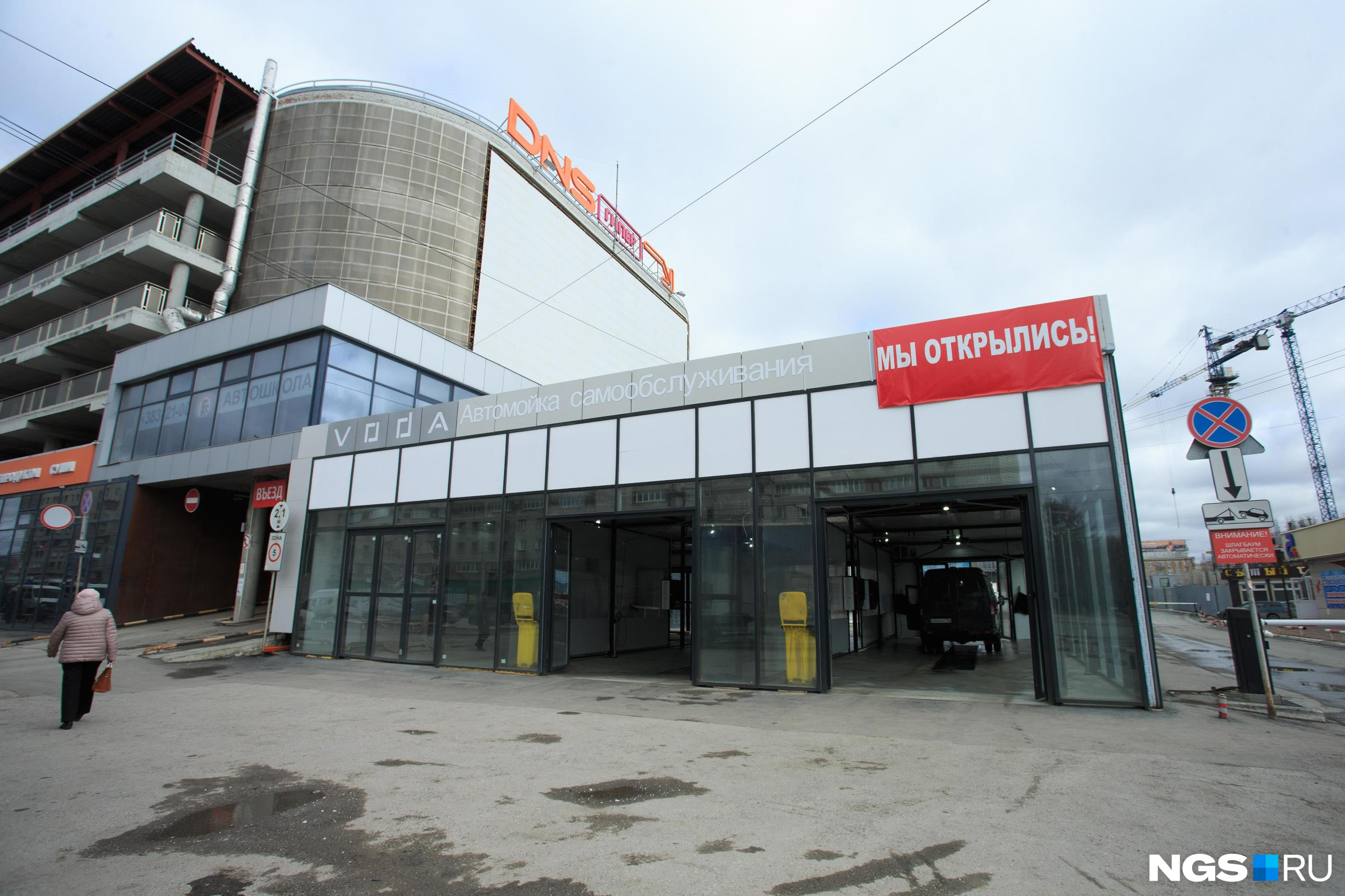 Ранее НГС писал, что к автостоянке «Гранит» на улице Покрышкина, 6 пристроили круглосуточную автомойку самообслуживания Voda, на здании повесили яркую надпись об открытии, а водители уже пользуются услугами. О том, что строят именно автомойку стало известно еще в сентябре прошлого года, тогда об этом рассказала администратор торгового центра «Грани». Она объяснила, что объект возводят на земле, которая принадлежит «Граням» и собственник отдал часть участка в аренду.