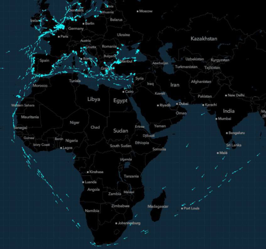 Поменявшаяся карта морских логистических потоков после того, как хуситы начали нападать на судна. Красное море и израильский порт Эйлат исключены из мировой торговли.