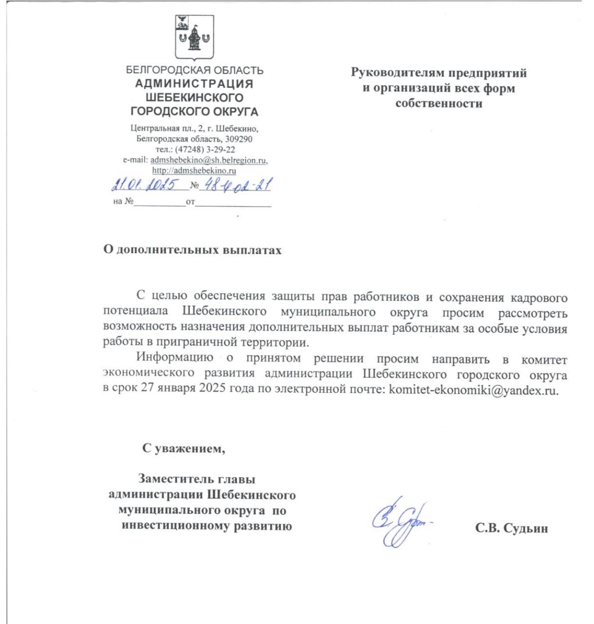 Бизнес в Шебекино, который и так на ладан дышит, должен, по мнению администрации, больше платить своим сотрудникам за работу в прифронтовой зоне. При этом от государства помощи предприятиям нет и они просто загибаются. Но как-то должны найти средства и чтобы не закрыться, и чтобы работникам повысить оплату.
