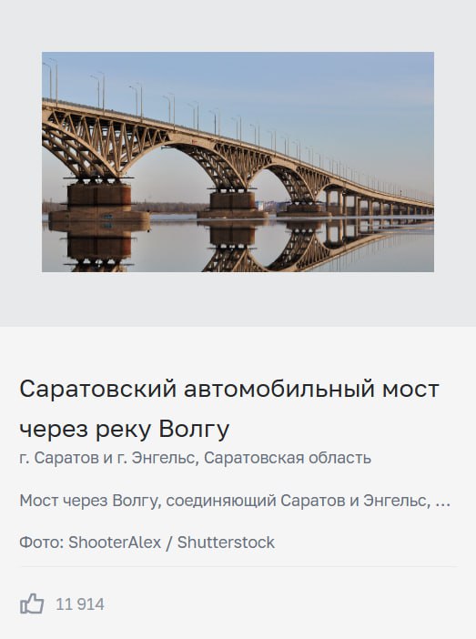 По данным на 14:52 по Уфе на первом месте Метеор (28 тысяч голосов), памятник Салавату Юлаеву (17 тысяч) на втором и на третьем Саратовский мост через Волгу (12 тысяч)