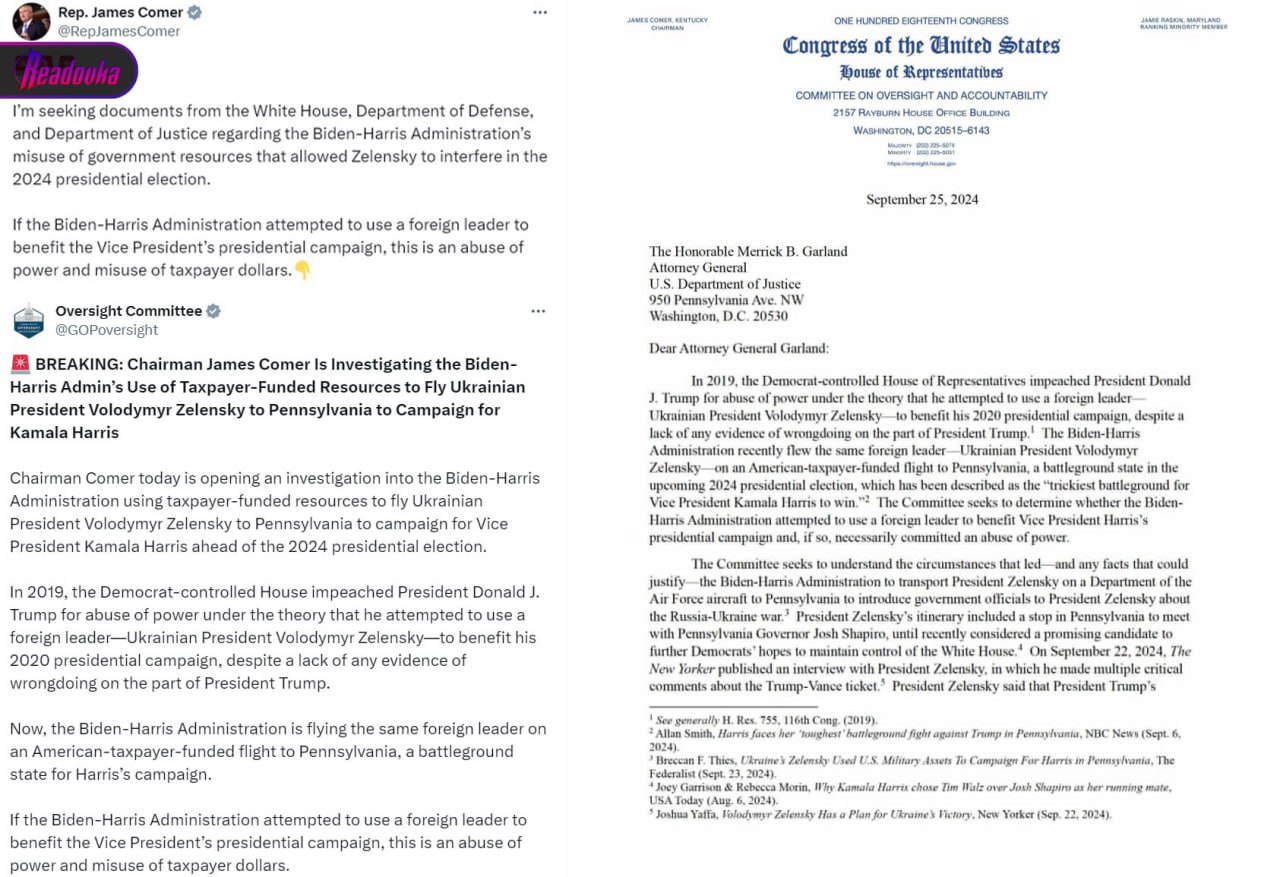Вашингтон даже не стал скрывать, что использует Зеленского в своих политических целях и прямо обозвал его визит «участием в предвыборном мероприятии» — естественно, в поддержку Камалы Харрис. Разбор полетов по поводу наглой растраты казны в пользу кандидата от демократов инициировал республиканец Джеймс Комер. Расследовать, как же так вышло, будет целый комитет Конгресса по надзору и подотчетности.