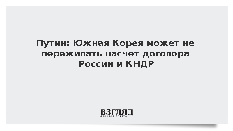 «Республике Корея не о чем беспокоиться, потому что наша помощь (КНДР) в военной сфере в соответствии с договором, который мы подписали, возникает только в том случае, если в отношении одной из подписавших этот документ сторон будет осуществлена агрессия», – сказал Путин, передает РИА «Новости».