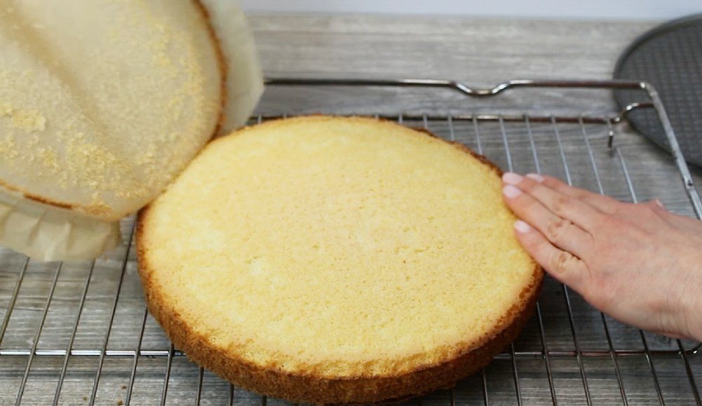3 Застилаем пергаментом форму для выпекания диаметром 26 см. Выливаем в нее тесто. Ровняем его. Отправляем форму в разогретую до 180 градусов духовку на 20–25 минут.