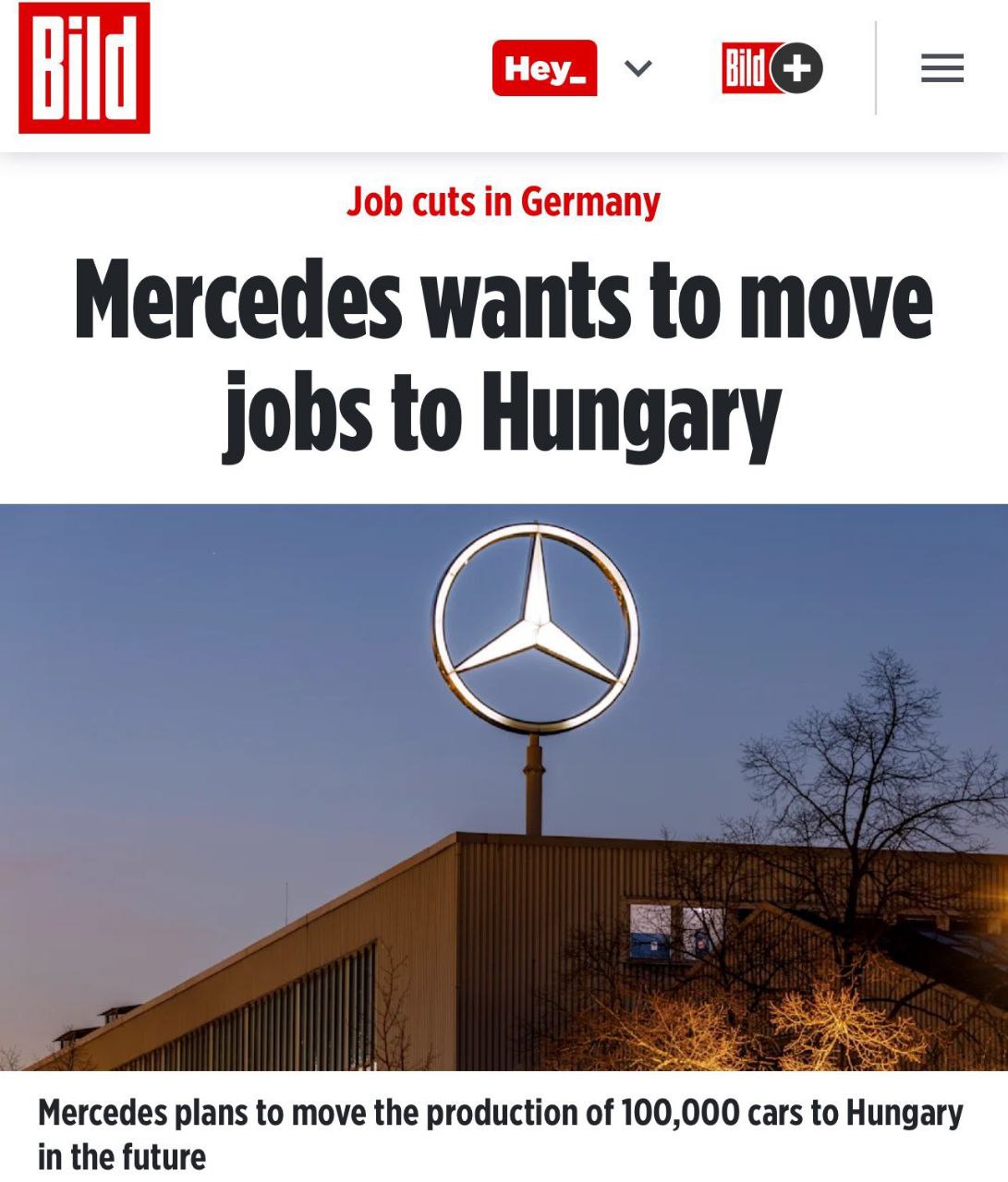 Mercedes хочет производить больше автомобилей в Венгрии и сократить рабочие места в Германии. План Орбана покупать дешевые российские энергоносители дает результаты. Венгрия дешевле по цене рабочей силы, энергии и имеет удобную логистику.