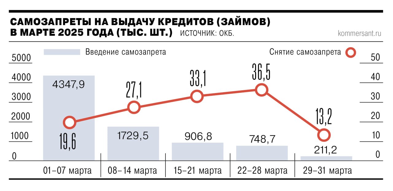 ΠΠΊΠΎΠ»ΠΎ 10% (7,94 ΠΌΠ»Π½ ΡΠΎΡΡΠΈΡΠ½) ΡΠΊΠΎΠ½ΠΎΠΌΠΈΡΠ΅ΡΠΊΠΈ Π°ΠΊΡΠΈΠ²Π½ΠΎΠ³ΠΎ Π½Π°ΡΠ΅Π»Π΅Π½ΠΈΡ Π²ΠΎΡΠΏΠΎΠ»ΡΠ·ΠΎΠ²Π°Π»ΠΈΡΡ ΠΎΠΏΡΠΈΠ΅ΠΉ ΡΠ°ΠΌΠΎΠ·Π°ΠΏΡΠ΅ΡΠ° Π½Π° Π²ΡΠ΄Π°ΡΡ ΠΊΡΠ΅Π΄ΠΈΡΠΎΠ² ΠΈ Π·Π°ΠΉΠΌΠΎΠ² Π² ΠΏΠ΅ΡΠ²ΡΠΉ ΠΌΠ΅ΡΡΡ Π΅Π³ΠΎ Π΄Π΅ΠΉΡΡΠ²ΠΈΡ. ΠΠΎΠ»ΡΡΠ΅ Π²ΡΠ΅Π³ΠΎ Π·Π°ΡΠ²Π»Π΅Π½ΠΈΠΉ Ρ ΠΏΡΠΎΡΡΠ±Π°ΠΌΠΈ Π·Π°ΠΏΡΠ΅ΡΠΈΡΡ Π²ΡΠ΄Π°Π²Π°ΡΡ ΡΠ΅Π±Π΅ ΠΊΡΠ΅Π΄ΠΈΡΡ Π³ΡΠ°ΠΆΠ΄Π°Π½Π΅ ΠΏΠΎΠ΄Π°Π»ΠΈ Π² ΠΏΠ΅ΡΠ²ΡΡ Π½Π΅Π΄Π΅Π»Ρ ΠΌΠ°ΡΡΠ°, Π° Π·Π°ΡΠ΅ΠΌ ΠΈΡ ΡΠΈΡΠ»ΠΎ ΠΏΠΎΡΡΠΎΡΠ½Π½ΠΎ ΡΠ½ΠΈΠΆΠ°Π»ΠΎΡΡ.