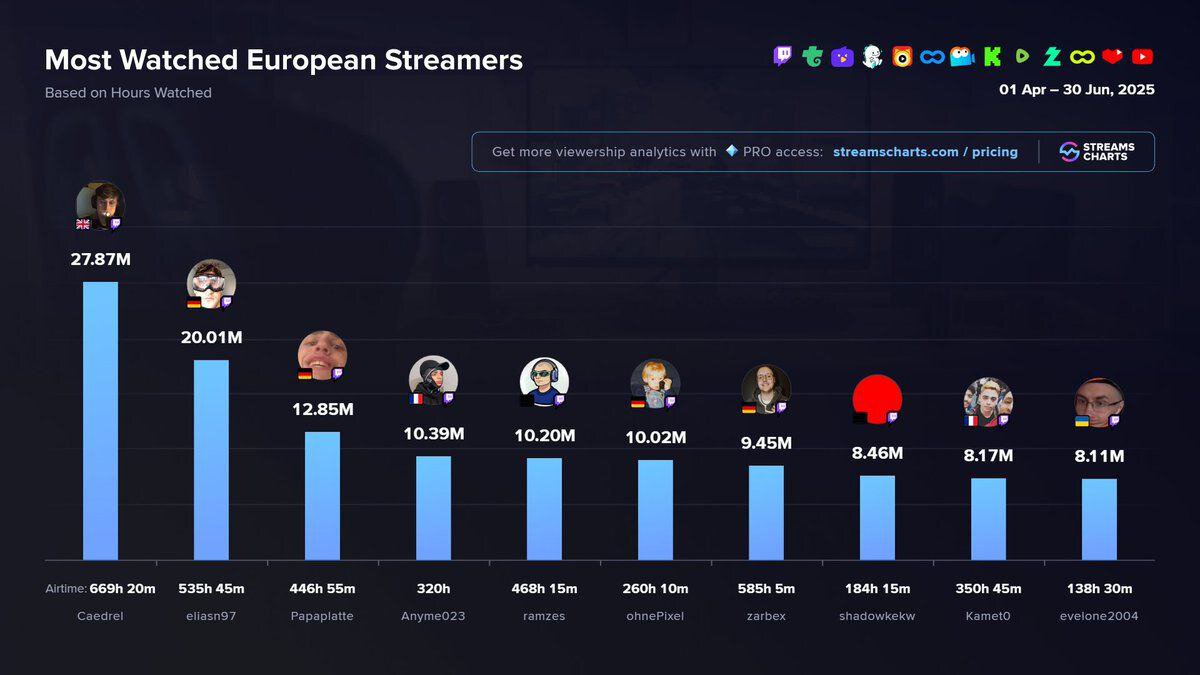 Ramzes666 обогнал Онепикселя и Шадоукека и занял 5-е место в топе европейских стримеров – 10,2 млн просмотров