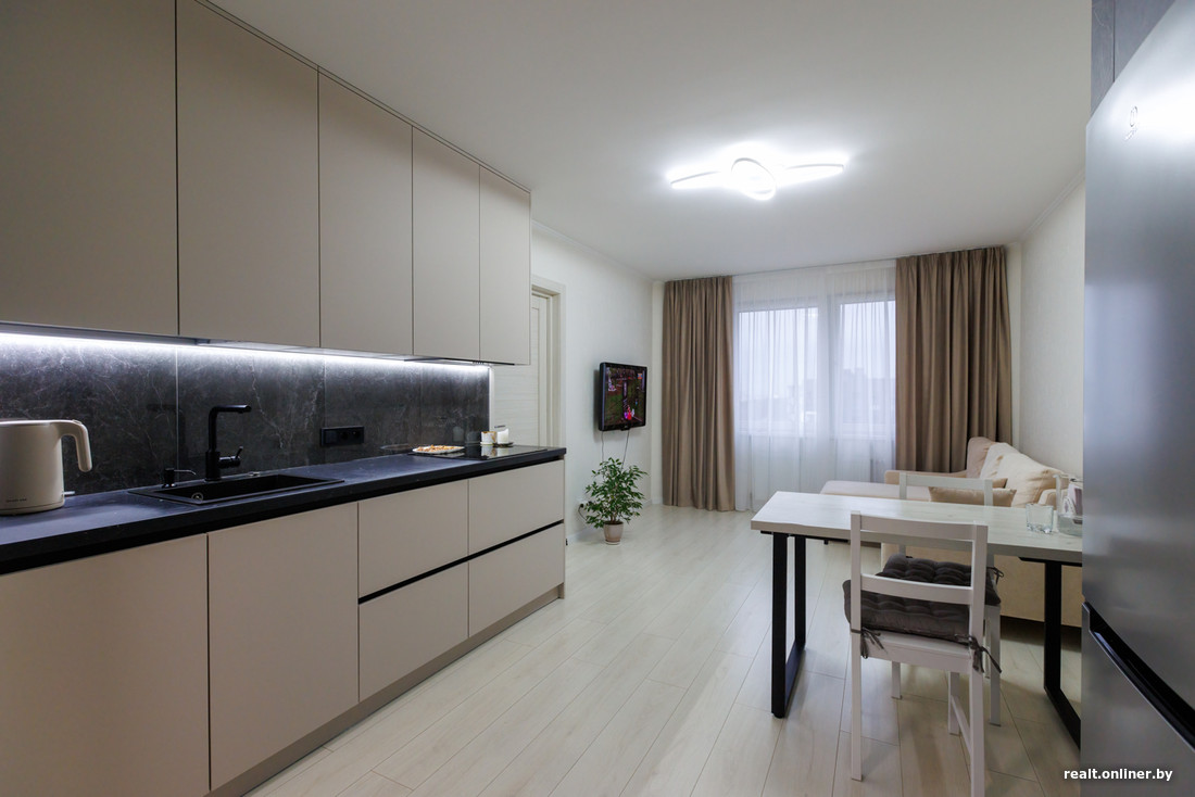 Теперь переходим к квартире на улице Братьев Райт. Татьяна сразу очень хвалит хозяек за решение сделать две спальни и общую кухню-гостиную.