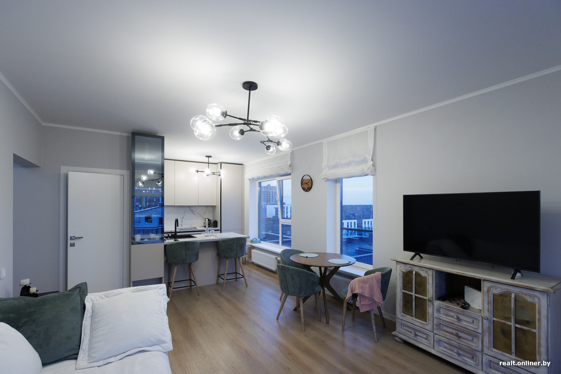 Выбрали двухкомнатную квартиру с кухней, с отделкой от застройщика. Такой вариант был примерно на 10 тысяч долларов дороже, чем без ремонта.