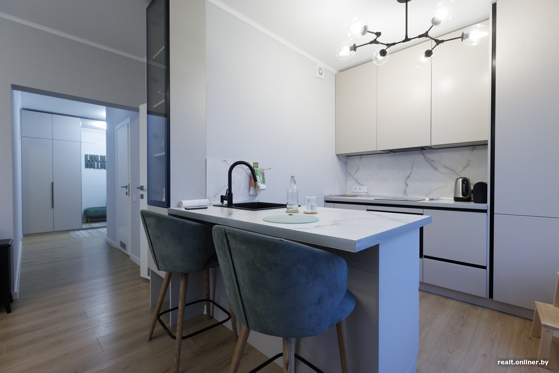 Полуостров — хорошее решение, поддерживает дизайнер решение хозяйки квартиры.