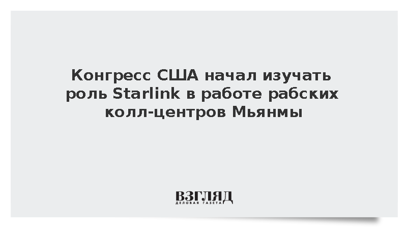 Объединенный двухпартийный комитет по экономике конгресса США начал расследование по факту возможного Starlink для работы мошеннических колл-центров в Мьянме, передает РИА «Новости» со ссылкой на Agence France Presse.