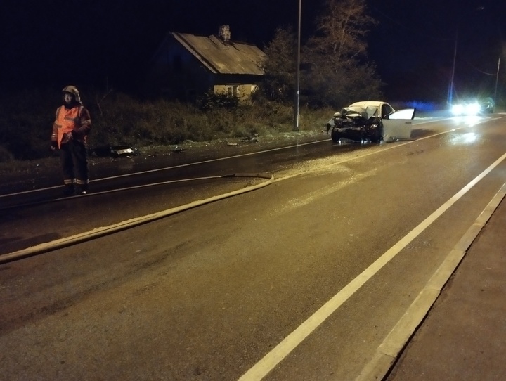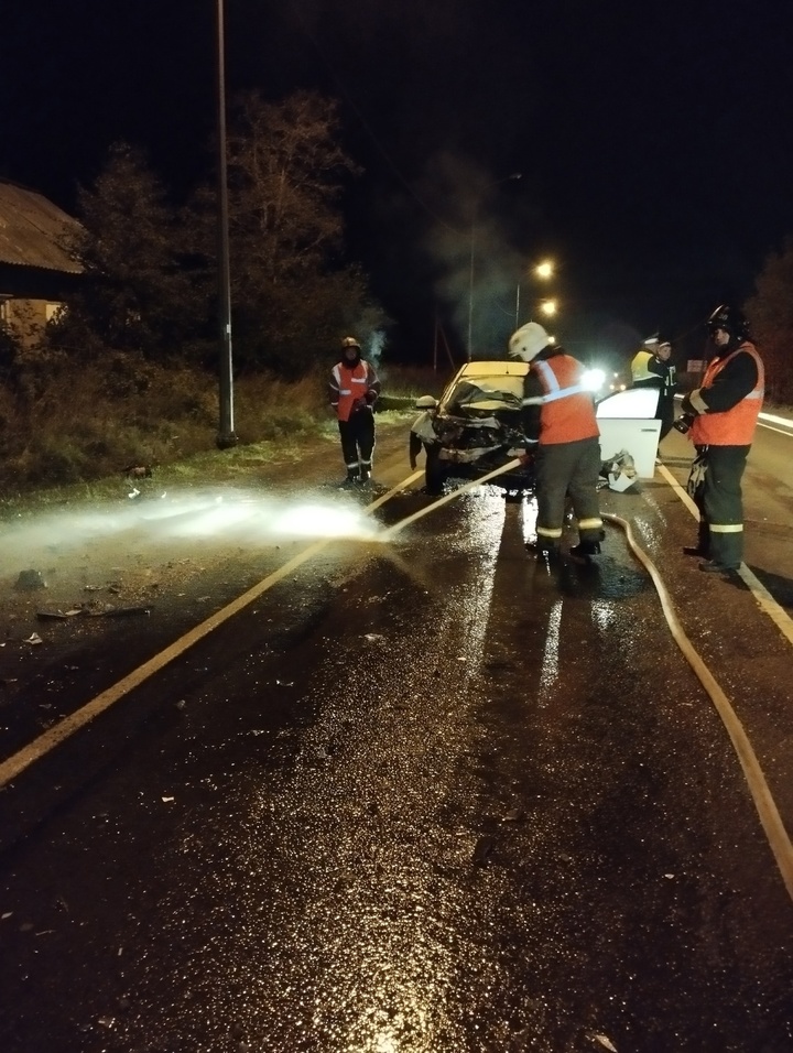 После ДТП в Карелии спасатели смыли стекла с дороги, водителя госпитализировали