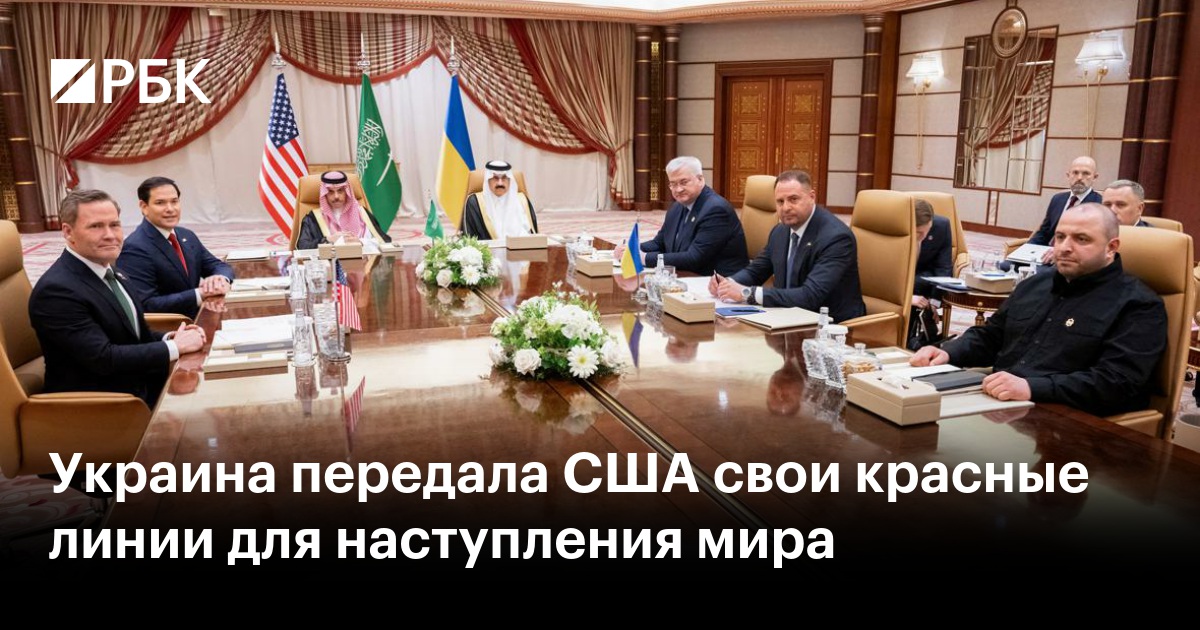 Украина на встрече в Саудовской Аравии представила США свои красные линии для мирных переговоров, сообщают «Европейская правда» (ЕП) и «РБК-Украина» со ссылкой на источники.