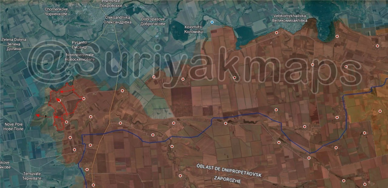 Обстановка на Васильевском направлении: в течение последней недели российская армия сумела закрепиться в центральной части населённого пункта Приморское, оставив под контролем украинской армии лишь небольшую часть на севере.