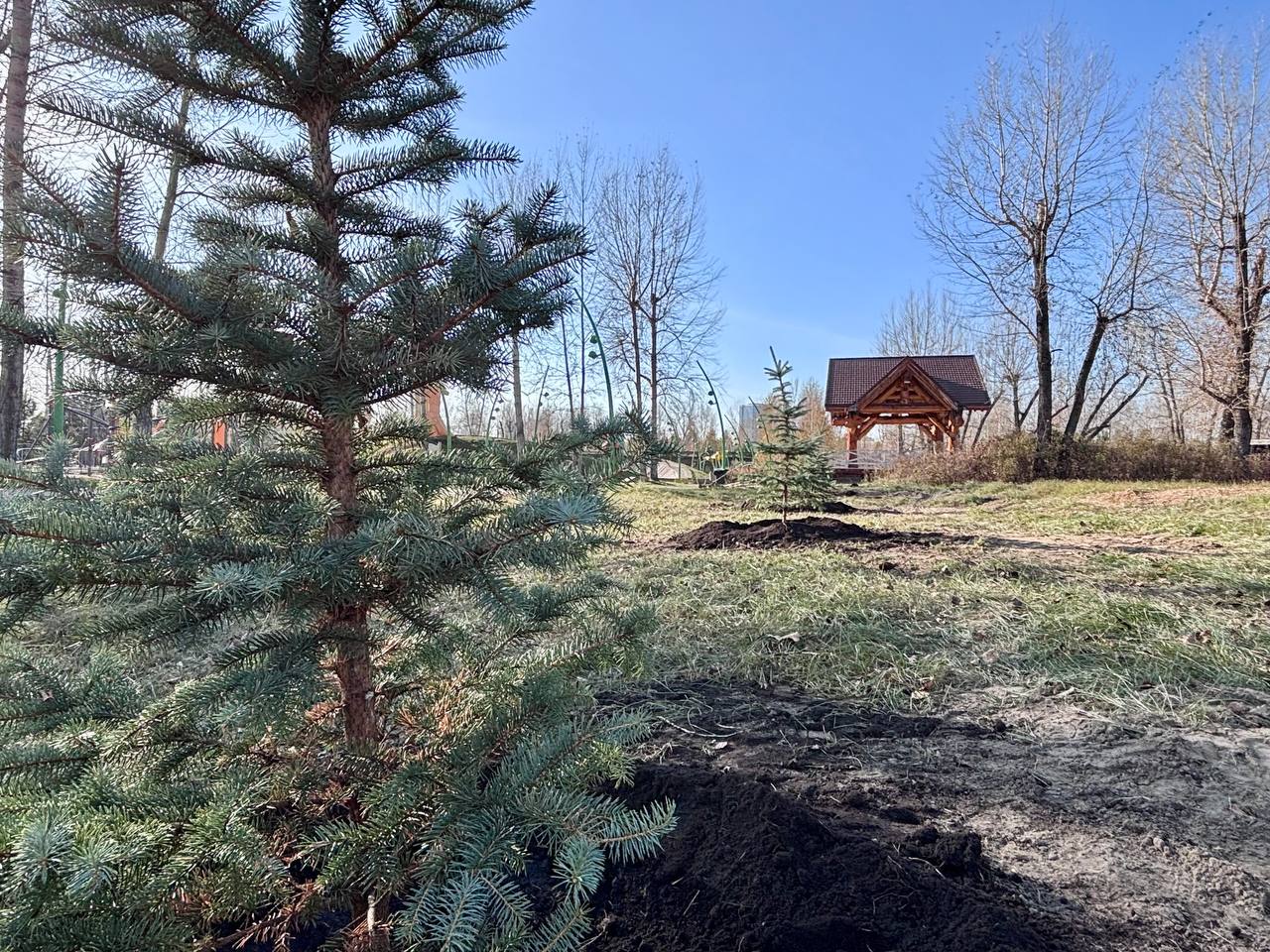 Работы проходят в сезонный спад посещаемости, чтобы к следующему лету площадка была полностью готова. Также на территории появились пять голубых елок, они украсят пространство и создадут атмосферу уюта.