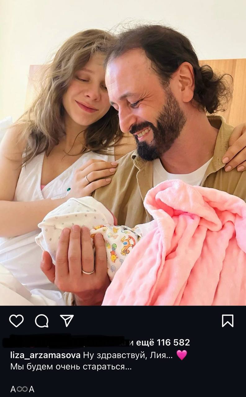 Лиза Арзамасова рассказала, что у них с Ильей Авербухом родилась дочь. Девочку назвали Лией.