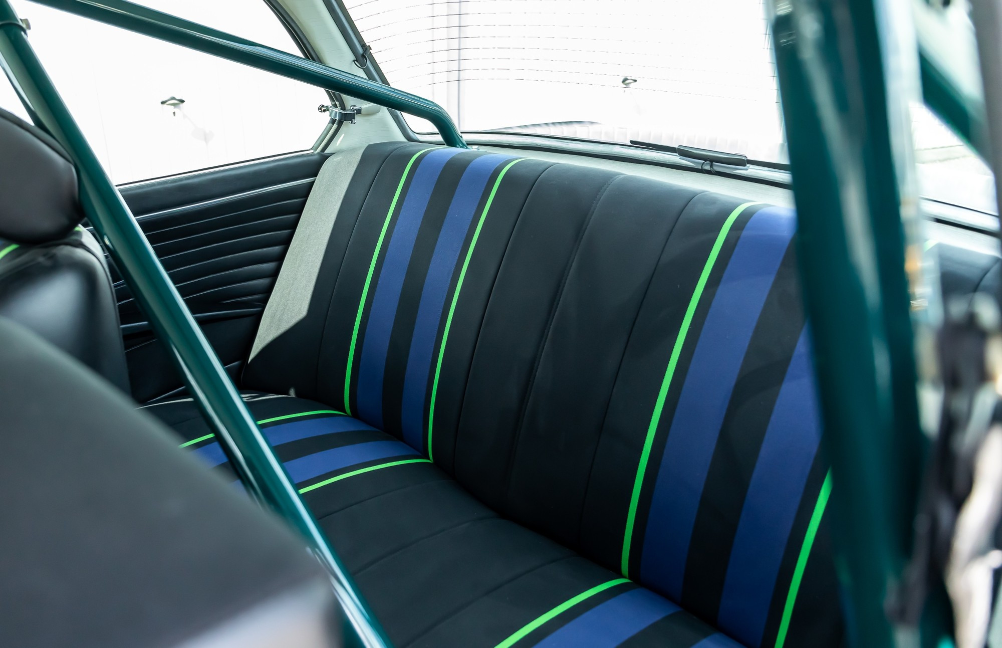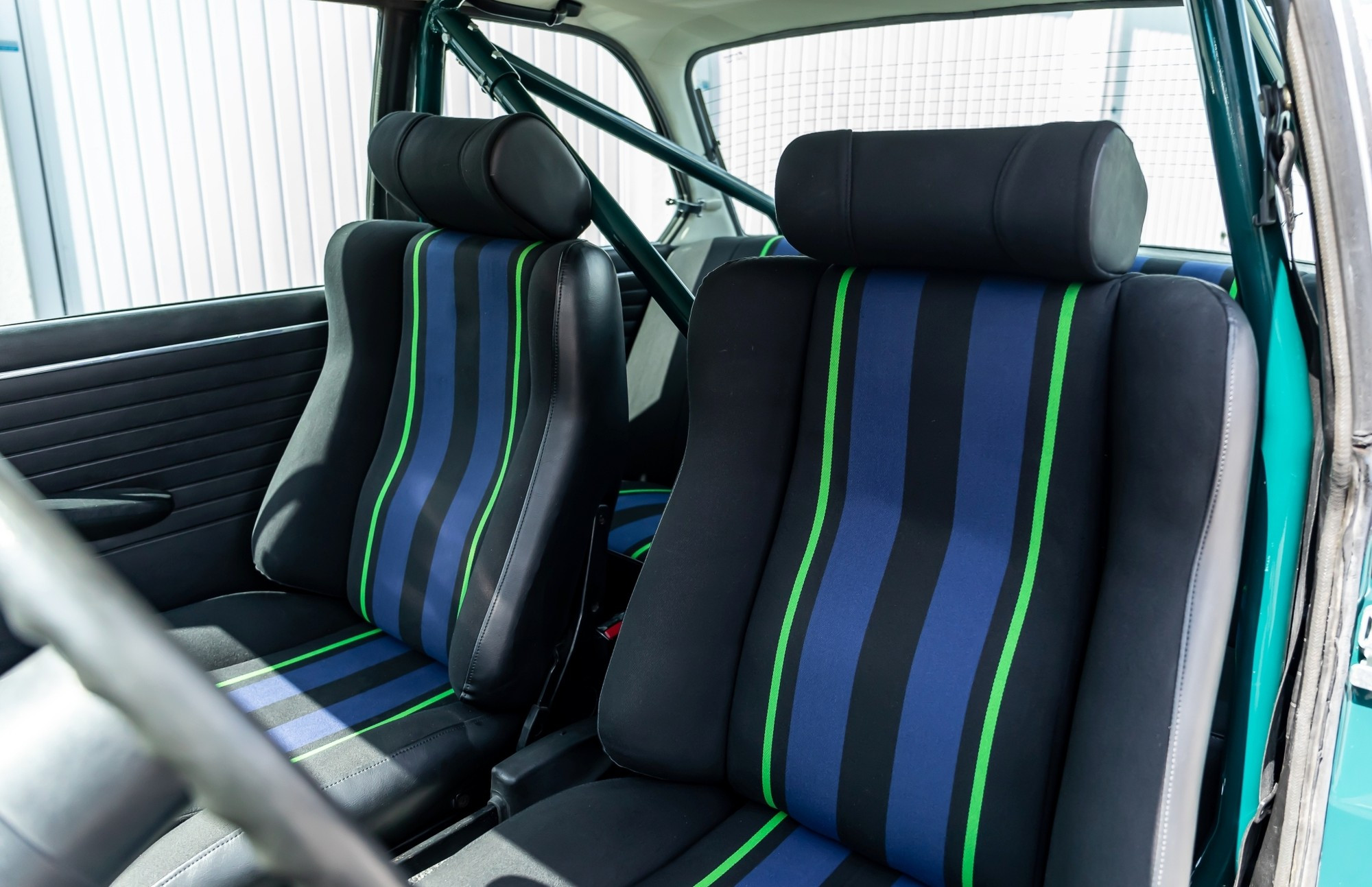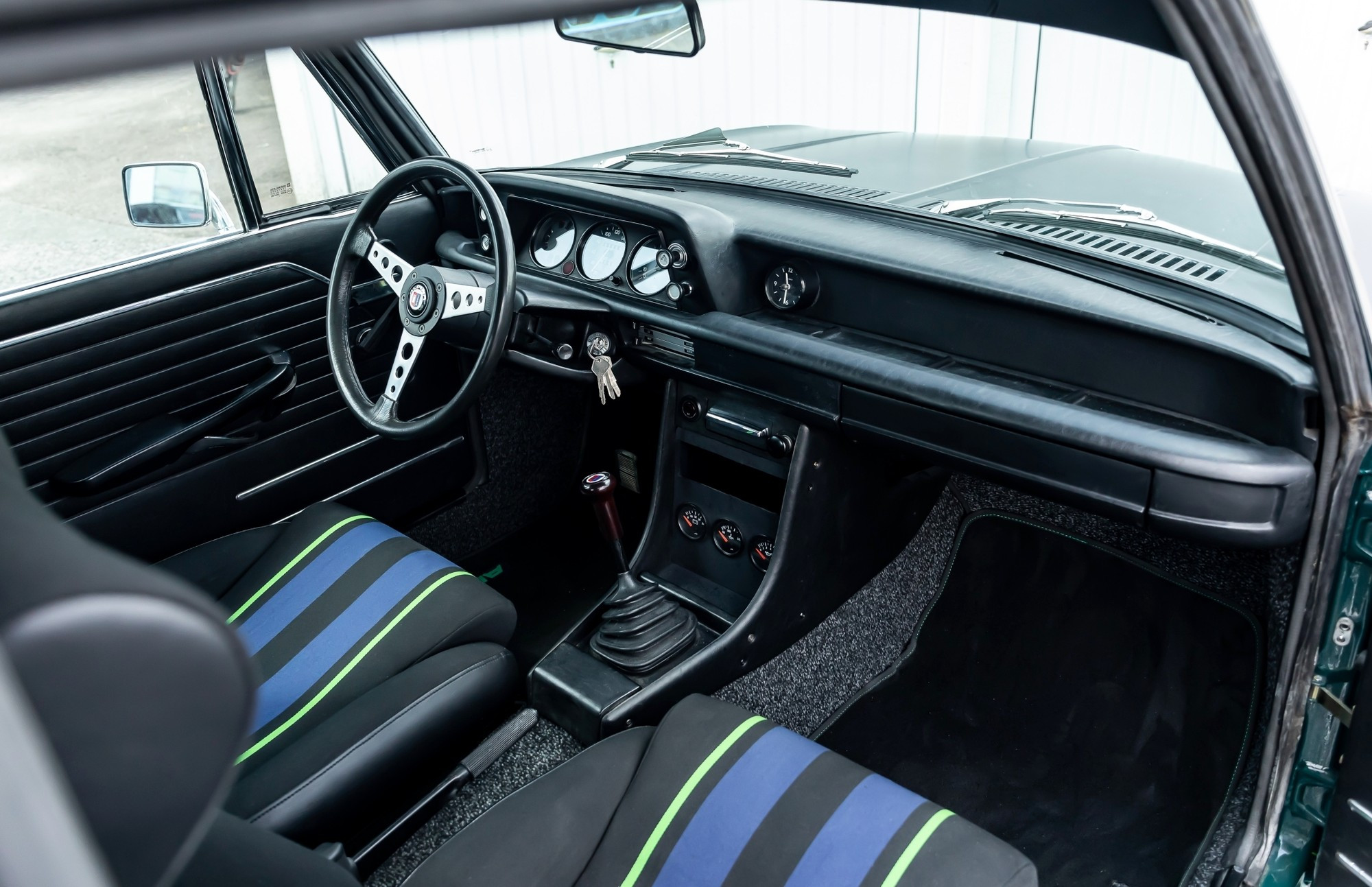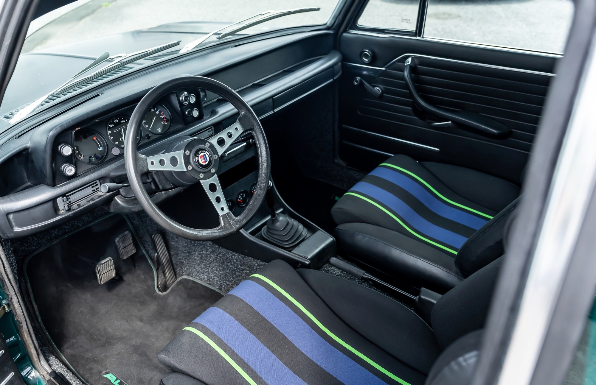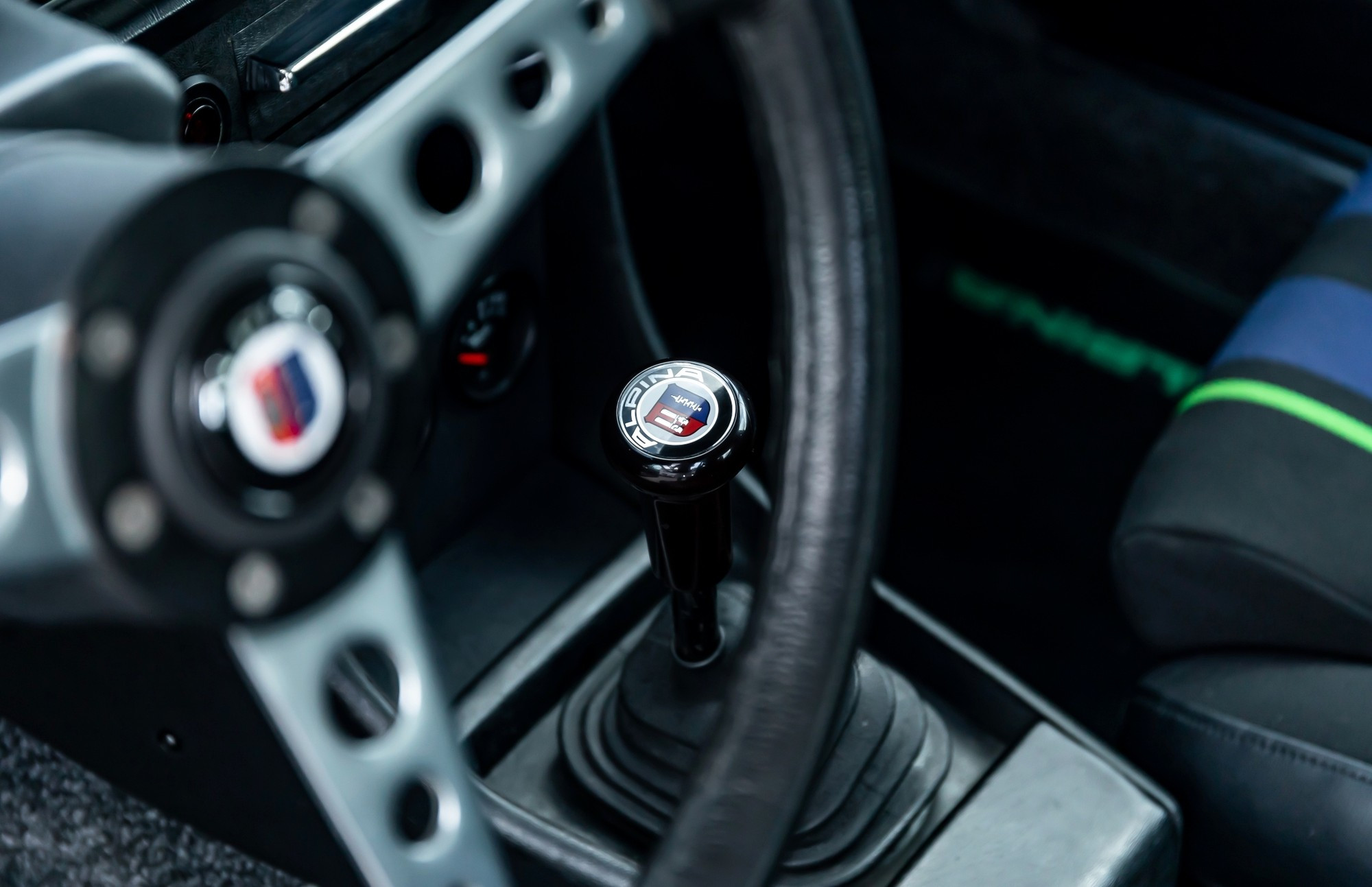 Салон тоже полностью отреставрирован, винтажные спортивные кресла Scheel получили новую комбинированную обивку в классической сине-зелёной расцветке. Трёхспицевый руль, рычаг переключения передач и коврики несут логотипы Alpina. Аудиосистемы нет, все приборы оригинальные, стеклоподъёмники — на «вёслах», дух 60-х здесь ничем не испорчен, даже правого зеркала заднего вида у этой машины нет, но с учётом аквариумной обзорности проблем с маневрированием быть не должно.