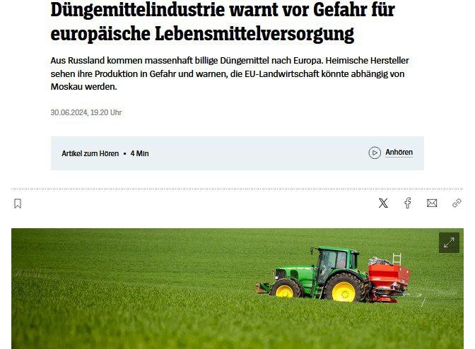 Из-за конфликта в Украине и прекращения российских поставок газа Европа пережила сокращение производств удобрений, а потом попала в зависимость от экспорта из России. К настоящему времени европейские аграрии снова имеют доступ к важнейшим удобрениям, «причём за счёт потока дешёвого импорта удобрений из России», — пишет Der Spiegel.
