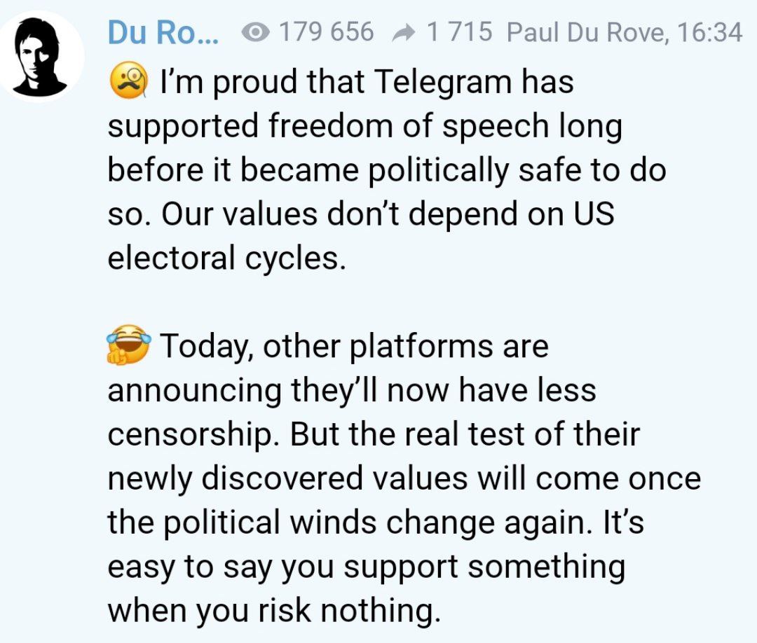 «Политические ветра снова меняются», написал Дуров. Он отметил, что «легко говорить, что вы что-то поддерживаете, когда вы ничем за это не рискуете». https://t.me/banksta/63425