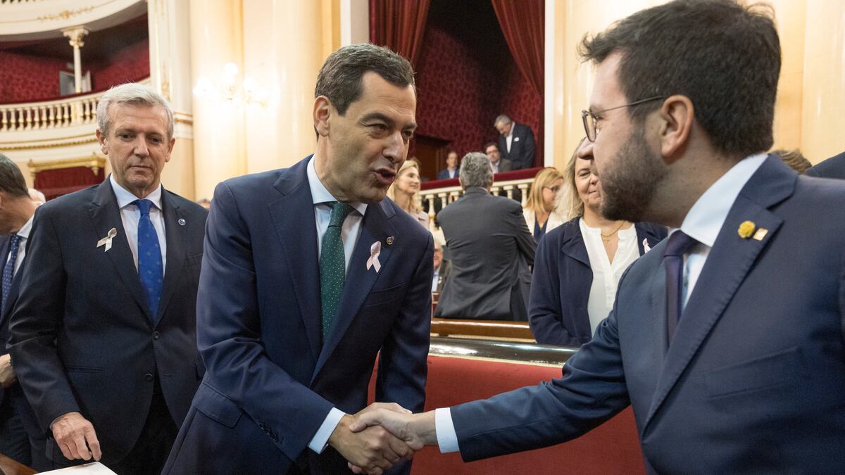 Uno de los presidentes autonómicos del PP que saludó al president fue Moreno Bonilla. Pero ni el dirigente andaluz ni el gallego Alfonso Rueda, dos pesos pesados dentro del mapa territorial del PP, participarán esta vez en la ofensiva del próximo lunes. Moreno Bonilla tiene una cita ineludible en Sevilla para inaugurar la construcción de un tramo de la línea de Metro. Rueda, por su parte, se tomará la jornada para preparar su sesión de investidura prevista para un día después. El presidente de la Xunta sí estuvo presente en la Junta Directiva Nacional del pasado martes. A las puertas de la sede de la calle de Génova, el mandatario gallego descartó que su comunidad vaya a impulsar una “ley de concordia” similar a las de Castilla y León, Baleares o la Comunidad Valenciana. Unas iniciativas que avala la dirección nacional.
