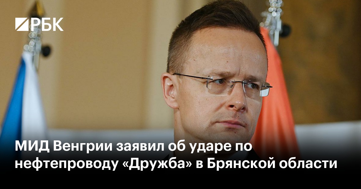 «Прошедшей ночью Украина совершила атаку с использованием дронов по критически важному распределительному узлу нефтепровода «Дружба» в Брянской области России. <...> Особенно возмутительно, что Украина вновь атаковала нефтепровод «Дружба», который обеспечивает Венгрию нефтью и играет ключевую роль в энергетической безопасности нашей страны», — сказано в заявлении ведомства.