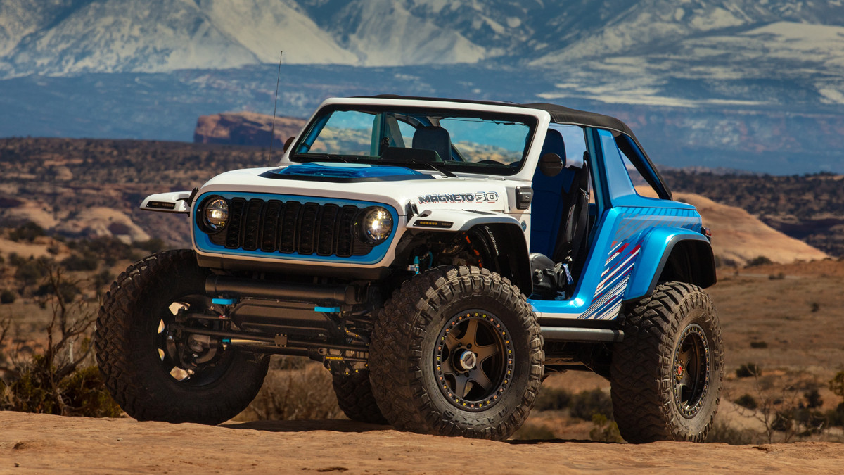 Ранее Jeep намекал на то, чего стоит ожидать от полностью электрического Wrangler, таким прообразом являлся концепт Jeep Wrangler Magneto 3.0, представленный минувшей весной. Он получил силовую установку мощностью 650 л.с. и 1220 Нм крутящего момента. Ещё у этого шоу-кара усиленная ходовая часть, 40-дюймовые внедорожные шины, конструкция без дверей и с мягкой крышей.