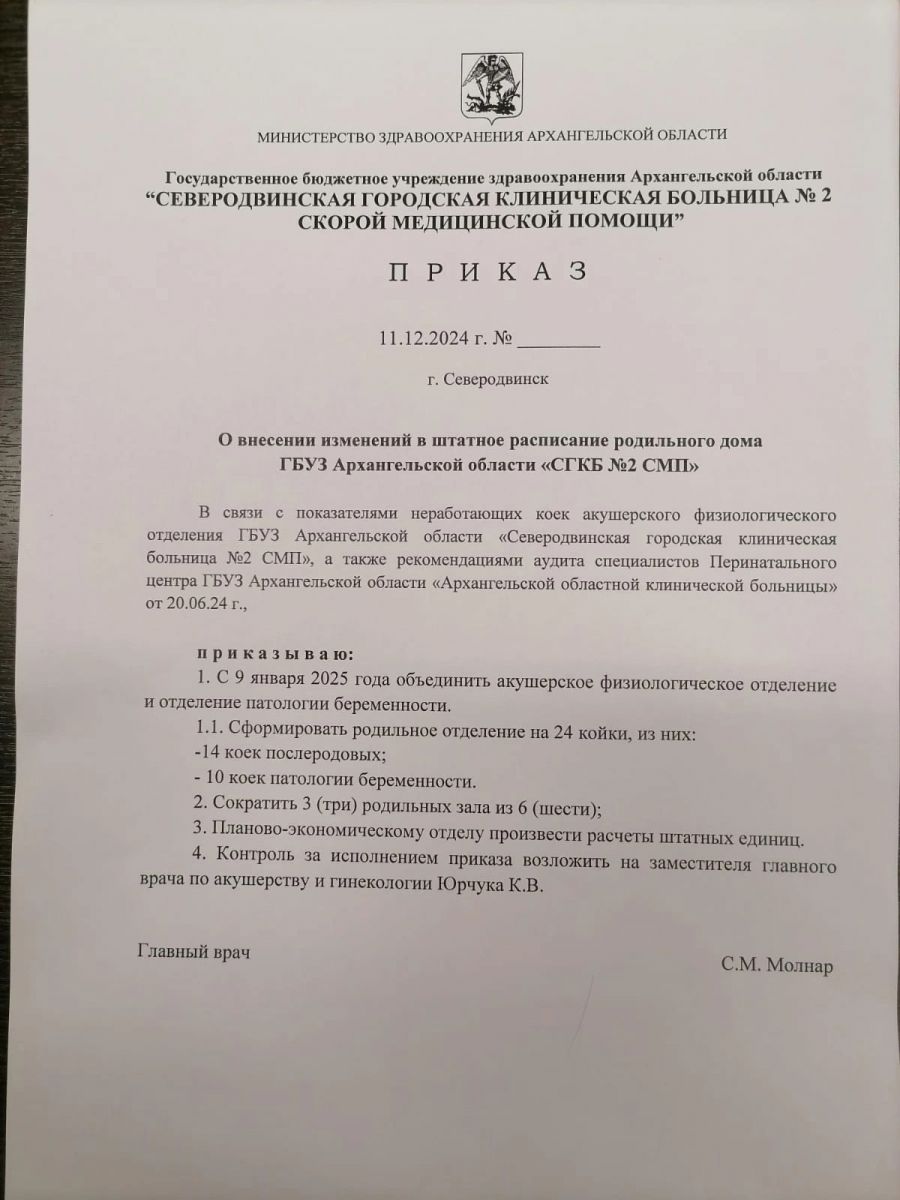 Глава Поморья заверил жителей города корабелов, что сокращение персонала не произойдет — всем специалистам роддома предложено перейти на работу в женскую консультацию.
