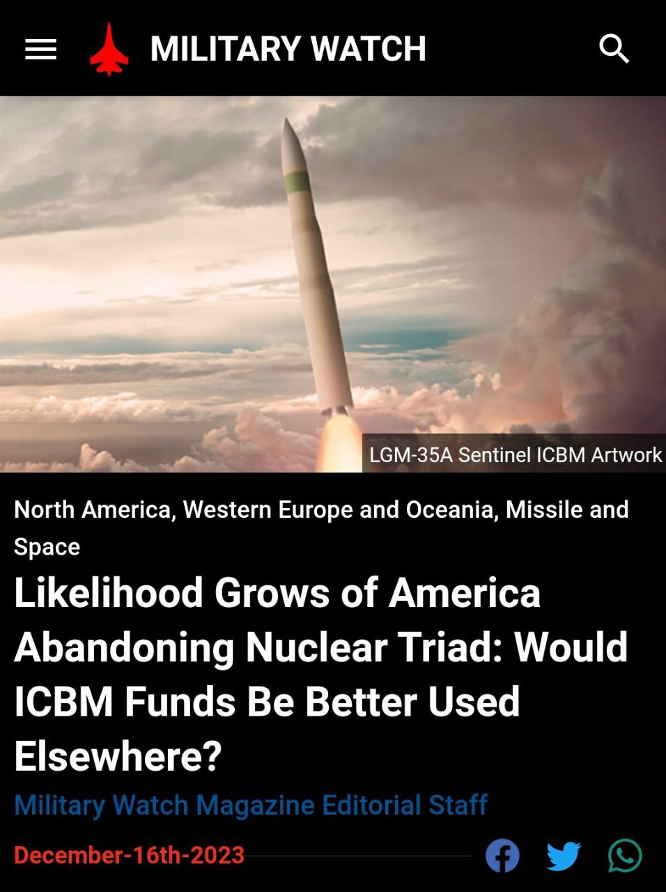 Military Watch Magazine: Вероятность отказа США от ядерной триады растёт