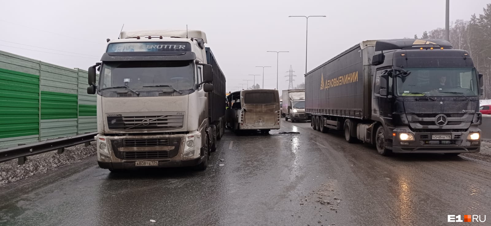 В сегодняшней массовой аварии на ЕКАД, где разбились около 40 автомобилей, пострадали 12 человек. Водитель автобуса находится в тяжелом состоянии.