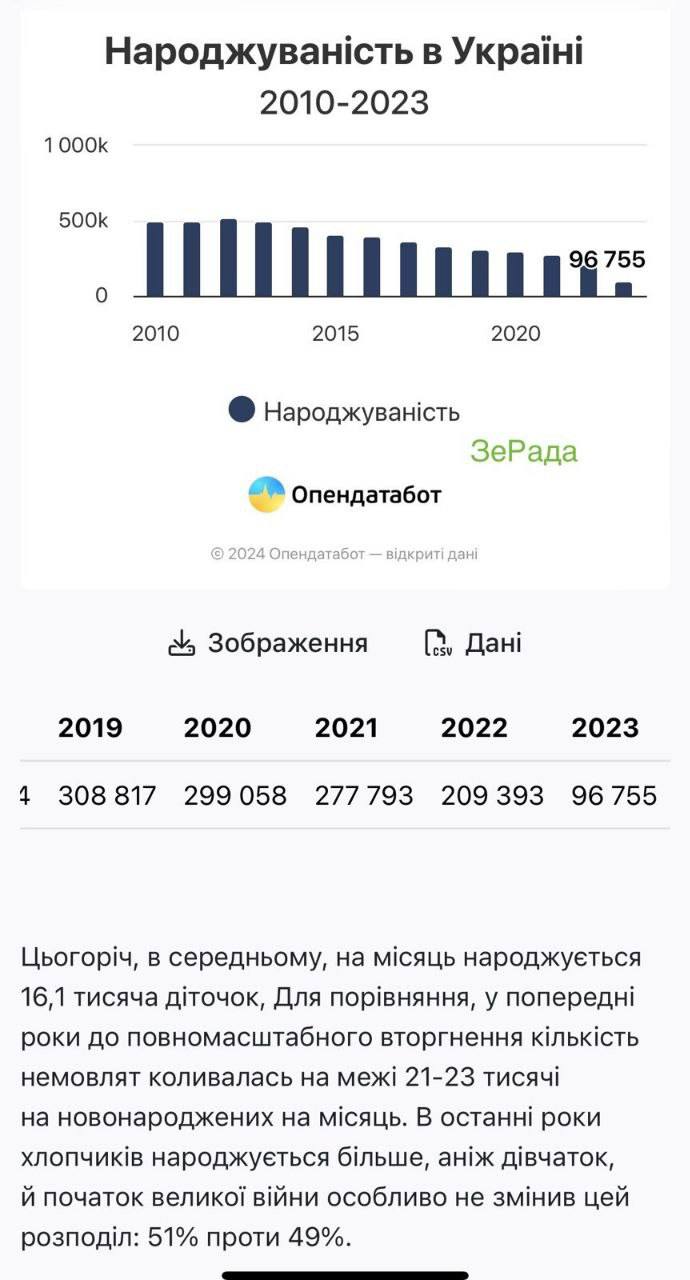 Π‘Π΅ΡΠ²ΠΈΡ OpenDatabot Π²ΠΈΠ·ΡΠ°Π»ΠΈΠ·ΠΈΡΡΠ΅Ρ ΠΊΠ°ΡΠ°ΡΡΡΠΎΡΠΈΡΠ΅ΡΠΊΠΈΠ΅ Π΄Π΅ΠΌΠΎΠ³ΡΠ°ΡΠΈΡΠ΅ΡΠΊΠΈΠ΅ Π΄Π°Π½Π½ΡΠ΅ (ΠΎΡ ΠΠΈΠ½ΠΈΡΡΠ΅ΡΡΡΠ²Π° ΡΡΡΠΈΡΠΈΠΈ). Π Π½Π°ΡΡΠΎΡΡΠ΅Π΅ Π²ΡΠ΅ΠΌΡ Π½Π° ΠΎΠ΄Π½ΠΎΠ³ΠΎ Π½ΠΎΠ²ΠΎΡΠΎΠΆΠ΄Π΅Π½Π½ΠΎΠ³ΠΎ Π³ΡΠ°ΠΆΠ΄Π°Π½ΠΈΠ½Π° Π£ΠΊΡΠ°ΠΈΠ½Ρ ΠΏΡΠΈΡ ΠΎΠ΄ΠΈΡΡΡ ΡΡΠΎΠ΅ ΡΠΌΠ΅ΡΡΠΈΡ . ΠΡΠΎ ΡΠΎΠΎΡΠ½ΠΎΡΠ΅Π½ΠΈΠ΅ - ΠΎΠ΄Π½ΠΎ ΠΈΠ· ΠΊΠ»ΡΡΠ΅Π²ΡΡ ΠΏΠΎΠΊΠ°Π·Π°ΡΠ΅Π»Π΅ΠΉ Π΄Π΅ΠΌΠΎΠ³ΡΠ°ΡΠΈΡΠ΅ΡΠΊΠΎΠ³ΠΎ ΠΊΡΠΈΠ·ΠΈΡΠ°, ΡΠ°Π·ΡΠ°Π·ΠΈΠ²ΡΠ΅Π³ΠΎΡΡ Π² Π£ΠΊΡΠ°ΠΈΠ½Π΅.
