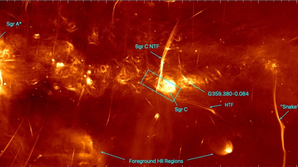 Облик же Sagittarius C необычен. В этом регионе найдены десятки ярких нитей, состоящих из плазмы — горячего газа заряженных частиц.
