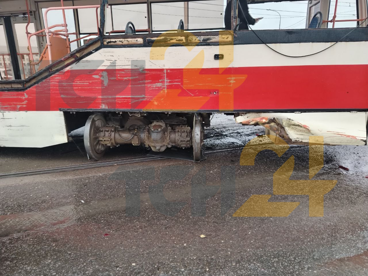 Представители оперативных служб рассказали изданию, что причиной ДТП стал сошедший с рельсов трамвай, который занесло на «встречку», где были маршрутки. Это случилось из-за дефекта трамвайных путей.