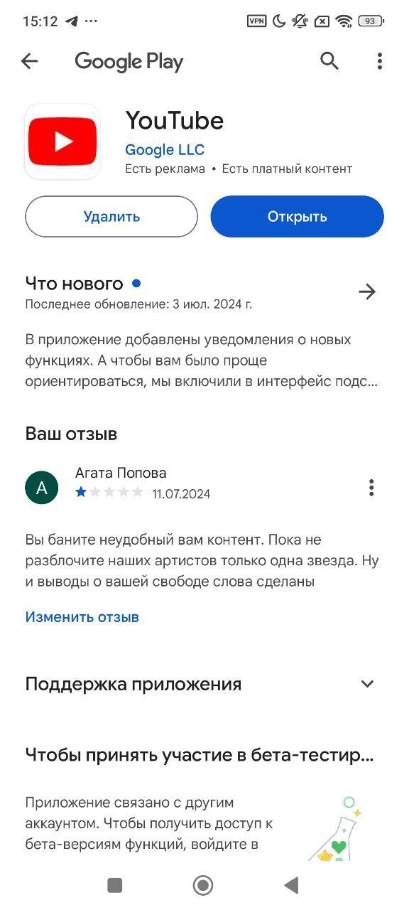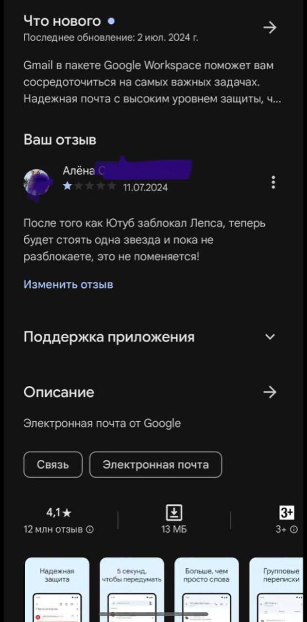 🇷🇺 Российские пользователи сервисов Google и YouTube обвалили их рейтинги в магазинах приложений из-за необъективной цензуры