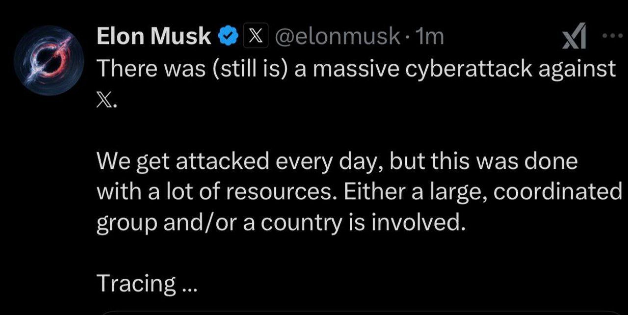 Маск заявил, что в отношении соцсети X была предпринята крупная кибератака. По его словам, были вовлечены ресурсы большой скоординированной группы или даже целой страны. Ранее сообщалось, что соцсеть лежит по всему миру уже несколько часов. 🟩 Подписаться | Прислать новость | Читать аналитику