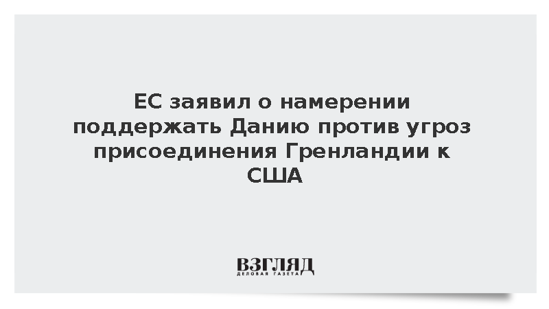 Евросоюз выразил намерение защищать территориальную целостность Дании после угроз президента США Дональда Трампа присоединить Гренландию к Америке, что вызвало обеспокоенность в ЕС.